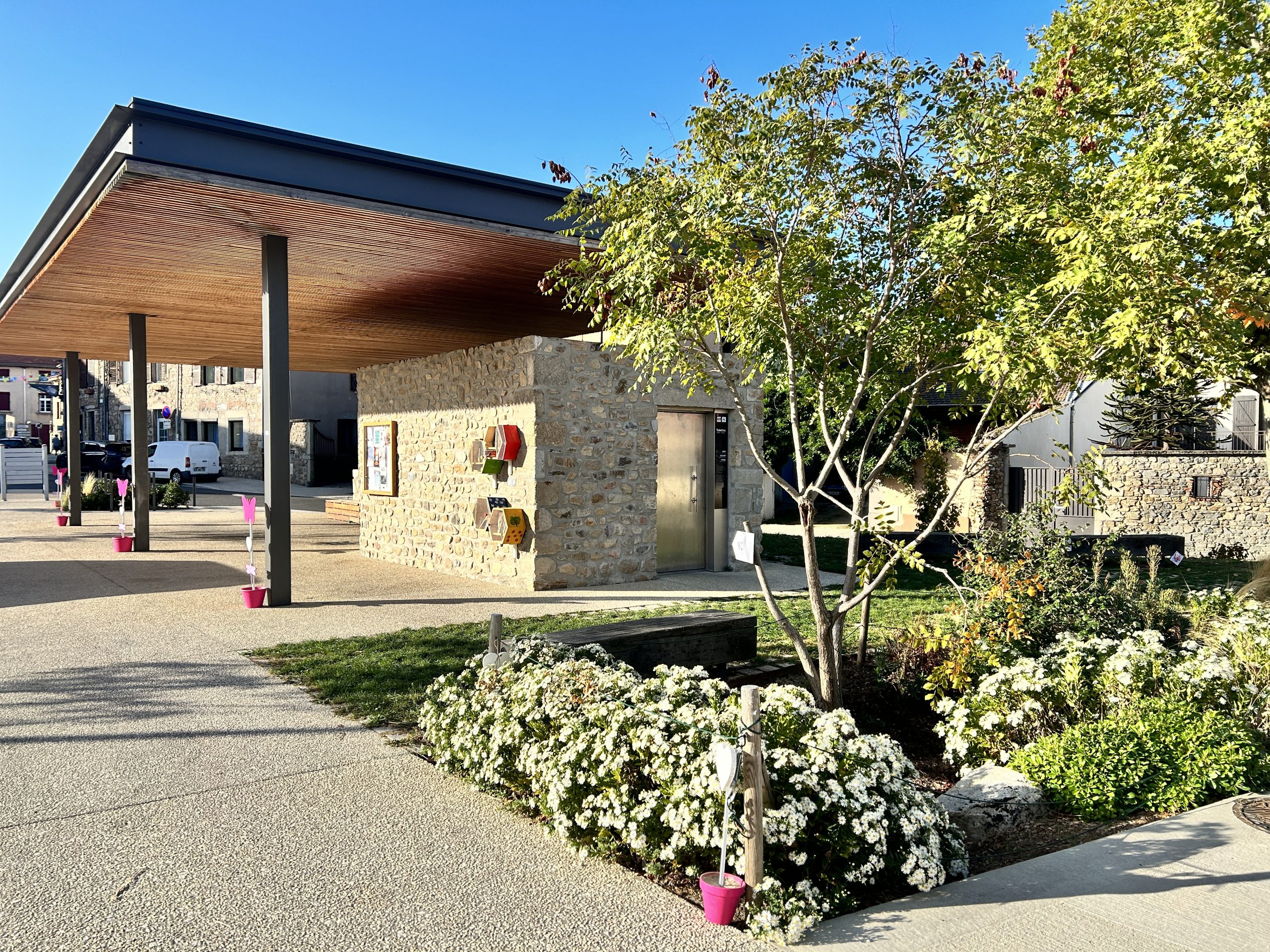 Le marché sous la halle est conforté avec un lieu couvert pour les événements, de l’affichage touristique et municipal, et l’intégration d’un sanitaire public.
